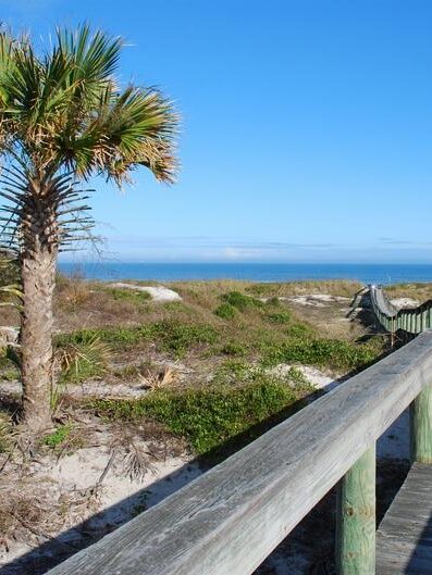 City skyline at dusk viewed from a park